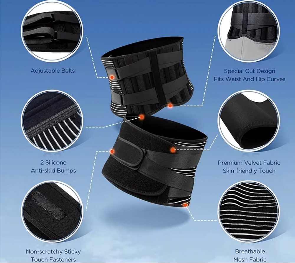 The support belt is made of highly elastic fabric on the outside that conforms to the natural curvature and supports the lower back, promoting muscle relaxation and proper alignment of the spine while the inner wrap of neoprene fabric ensures comfort and heat retention to alleviate back pain. This unique double support mechanism effectively provides abdominal support to help the spine take weight off the lower back. As a result, less pressure is placed on the spine, ligaments, muscles, discs and other injured areas to assist in recovery and offer more stabilization.