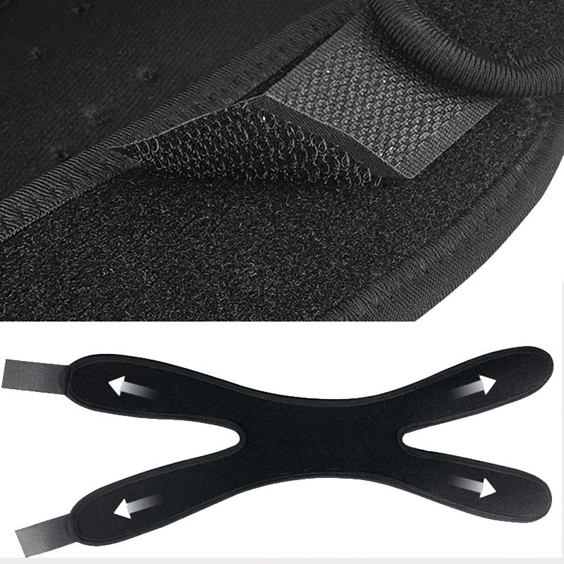 While a normal patellar strap just sits below the patellar or knee cap, we designed ours in a different, more effective way. With the two-strap-design we target not only the patellar, but also keep the complete knee in the correct position. All while applying the perfect amount of pressure and compression for the knee to be stable and safe. The ingenious X-design makes it extremely easy to adjust the compression to your preferred comfort level. Additionally, it makes this strap fit any knee. Don’t worry about sizing issues or trying to measure the circumference of your knee. Simply put this knee strap around your knee and adjust it to your liking. Yes, it’s that easy.